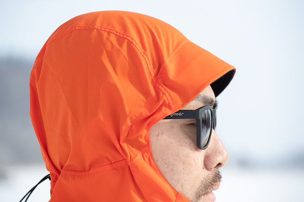 フーディ部分のドローコードを引く事で、目の上に、小さなつばが立体的に飛び出す所もアークテリクスらしい機能で気に入っている。