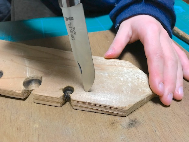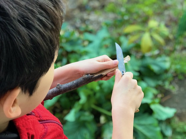 今までも包丁や小刀は使わせていたが、個人用のナイフは持たせていなかった。刃物の扱い方は身につけてほしいけれど、一生付いてまわるほどの大ケガはしてほしくない。いつになったらナイフを与えられるかと、たまに刃物を渡しては知らん顔をして(しかし横目で凝視しつつ)様子を見ていた。