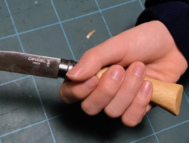 オピネルには刃物に不慣れな人向けにポイントを丸くしたモデルもあるが、刃物の使い方を知るために与えるなら、ポイントは必要だと思う。