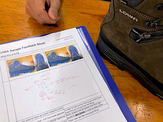 「いちばんこだわったポイントは、足首周りのフィッティング。ラストの変更に加え、フックの位置などを㎜単位で修正を行なっていきました。もっとも驚きなのは、こういった日本的な細かい要望に耳を傾けてくれるローバーの姿勢です。細かい注文を付ける私たちに対して、ローバーはきちんと耳を傾けてくれ、妥協せずに、リクエストごとにサンプルを仕上げてくれました。販売店様のタホーへの愛着と、このユーザーの声を大事にするローバー姿勢が今回のタホーⅡへとつながっていったのだと思います。」