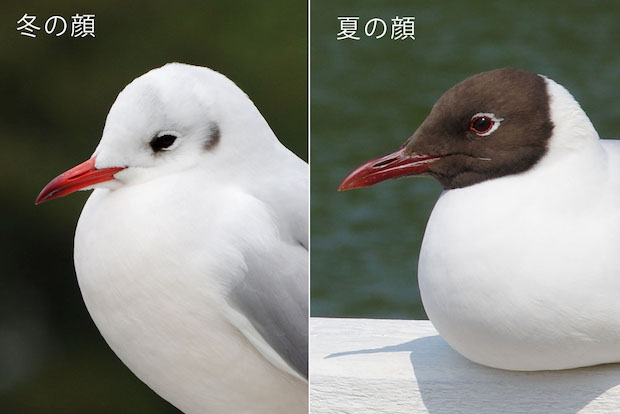 ユリカモメの衣替え。別の鳥に見えますね。