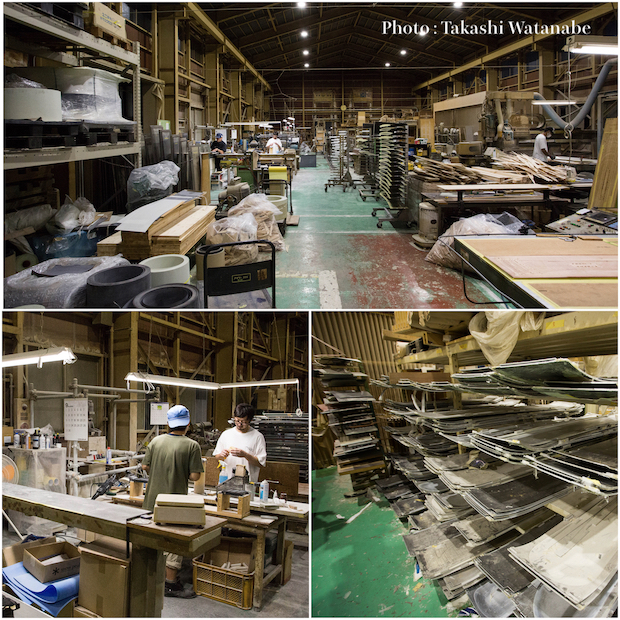 新潟県燕市の直営ファクトリーで職人が一枚一枚手張りで作り上げる。アーティストが描くグラフィックは3年継続するため、妥協できないポイント。工場直営だからこそ微妙な色彩調整も可能だ。