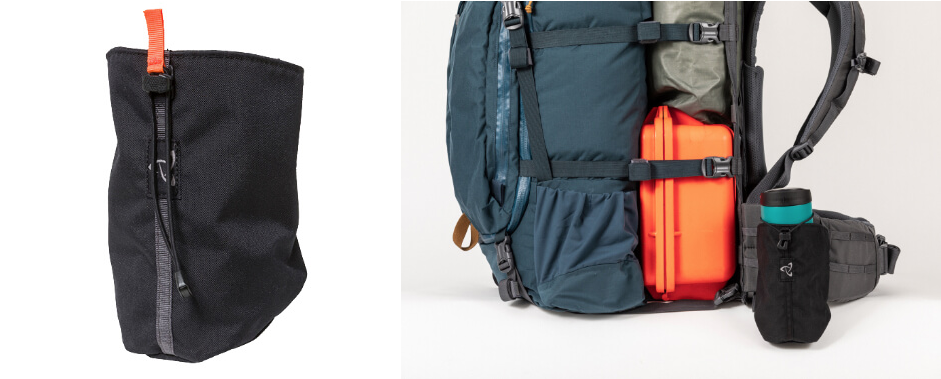 リムーバブルウォーターボトルポケット オーバーロードした際にパック本体にあるボトルポケットに手が届かなくなってしまうため、ウエストベルトに装着するためのリムーバブル・モデル。本体価格は2,800円。