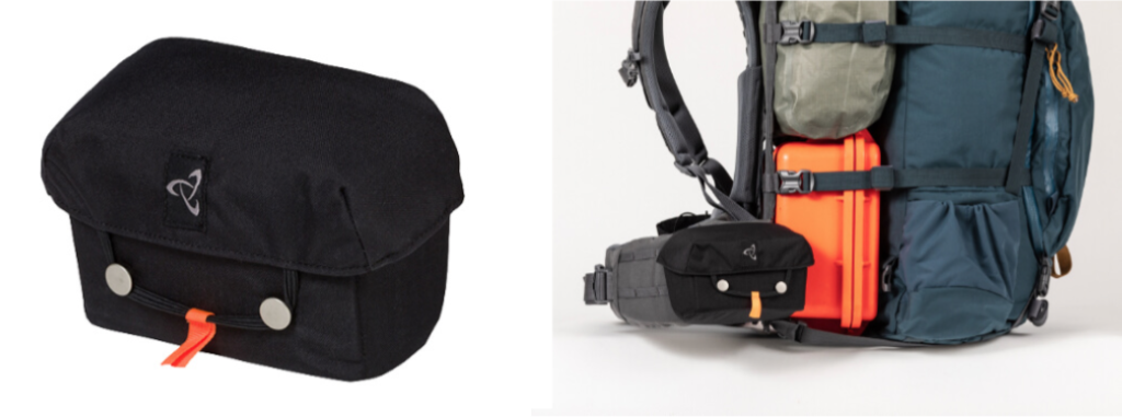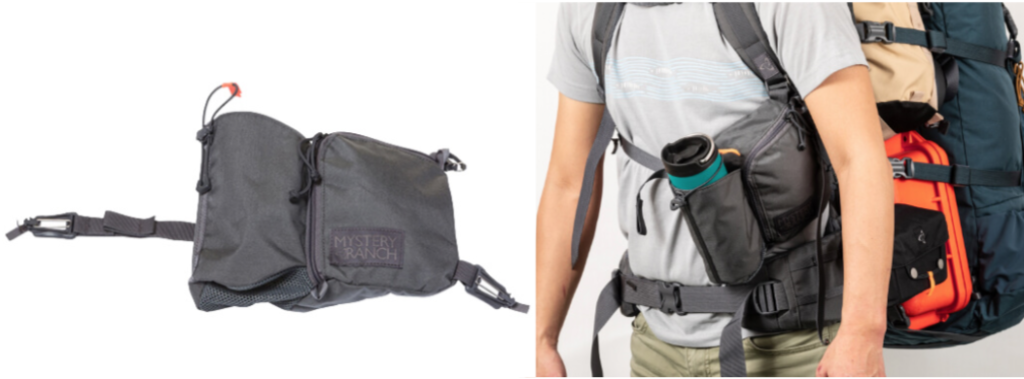 ミステリーランチのさらなる魅力はプラスアルファのアクセサリー群の充実である。自分の好みによって何を加えるべきかを選べるうえに、パックに装着した際には抜群の安定性を発揮してくれる。ともすると、初めからパックデザインに組み込まれていたのではと思えるくらい。もともとの機能を拡張してくれるものもあれば、完全な外付けで新たなポケットや小物入れ、ボトルポケットにカメラケースなどもある。また、オーバーロード機能を使っているときに便利なアクセサリーなども備え、選択の幅が広い。