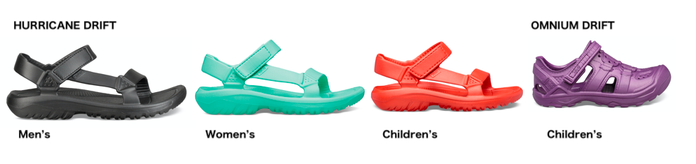 「HURRICANE DRIFT」はMen’s、Women’s、Children’sともにビビッドなカラーリングを採用しており、見た目から楽しくなるルックスが特徴的。「OMNIUM DRIFT」はつま先ーをガードするトウプロテクションを採用したキッズモデル。磯や渓流などでも、安心して子どもたちを遊ばせることができる。