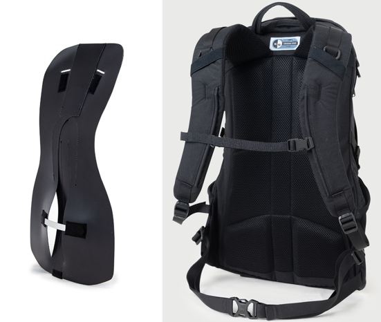 stingray 25の背面部内部には上の写真のような3Dの立体パネルを入れ込み、背負い心地のよさを追求している。