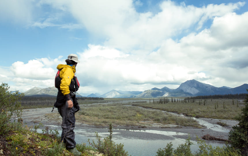 人の住む街や道路、登山道すら存在しない北アラスカは、アイディア次第で理想的なプレイグラウンド(遊び場)となる。徒歩旅行とパックラフトを組み合わせれば、どこまでも、いつまでも旅を続けられる。(撮影/村石太郎)