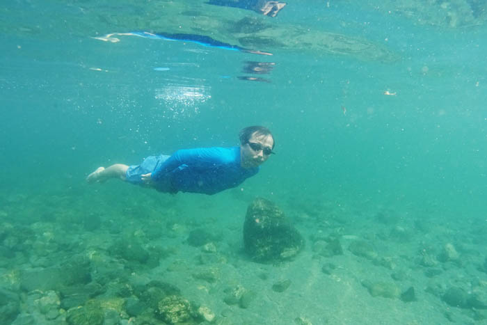 1秒のインターバル撮影でしばらく放置しておき、カメラの前で泳いだりもぐったりする。偶然頼みだけど、意外といい感じに撮れる。