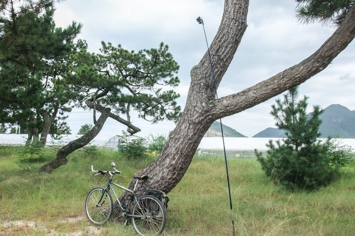 釣り竿+アクションカムを、木の枝などを利用して立て掛ければ、こんな俯瞰で撮れます。