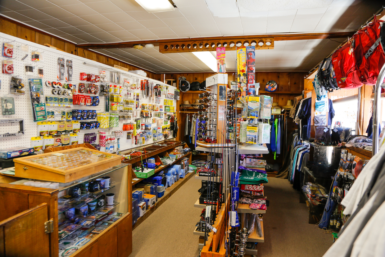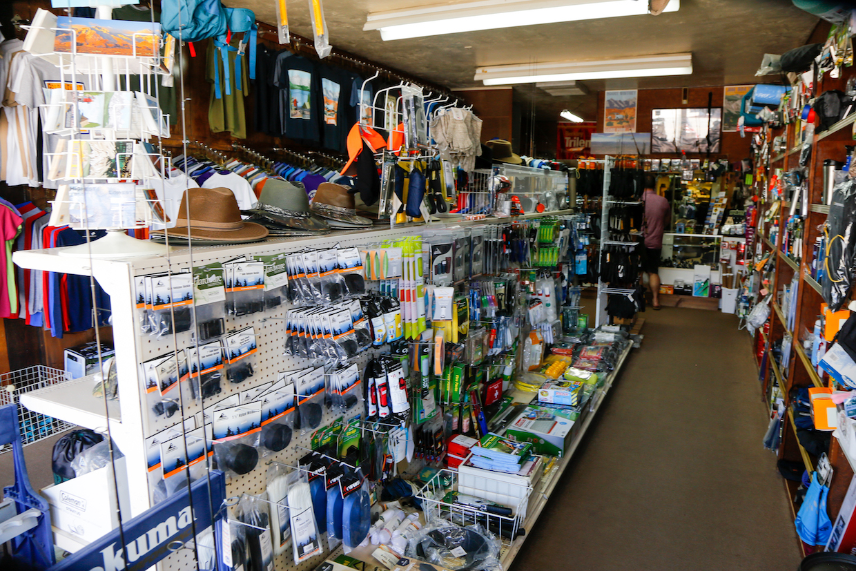 店の中に入ってみると、釣り具とキャンプやハイキングの小物がごちゃ混ぜに並んでいます。一流メーカーのものが並んでいるのではなく、わりとエントリー層が手を出しやすそうな、それでも最低限の役割をしっかり果たしてくれるクオリティの品々がありました。アメリカらしい飾らない商売をしていて好感が持てます。
