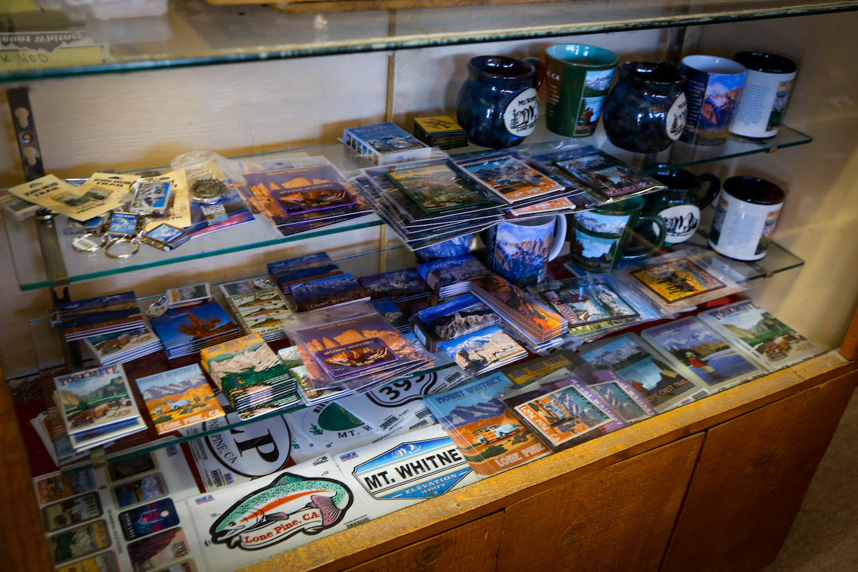 マウント・ホイットニーがデカデカとプリントされたTシャツはきっと店のイチオシ。おみやげ屋らしいおみやげ屋がないこの土地において、こういう外連味のないローカルアイテムの存在が嬉しい。