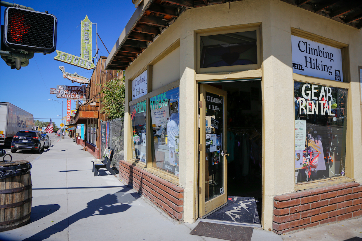 先のハイシエラ・アウトフィッターズの一軒挟んでお隣、中心街の角地に佇むこちらの「エレヴェーション・シエラ・アドベンチャー」は、この町でいちばん本格的なアウトドアショップ。クライミング、ハイキング、キャンピングのギアがひと通り揃っているので、国道396号を通過するならマストで立ち寄りたい一店です。アイゼンやスノーシューなどのレンタルもできるみたいですね。