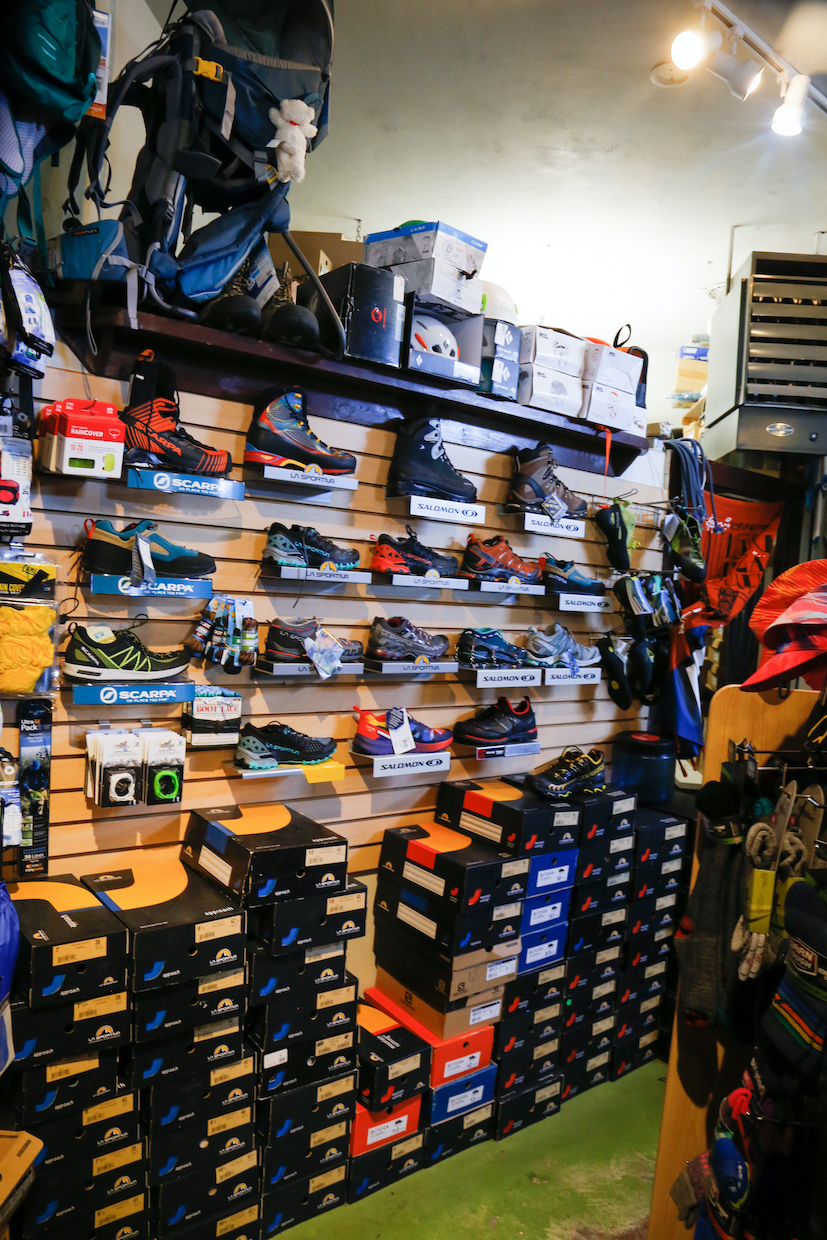 アウトドアリサーチ、マウンテンハードウェア、マムート、MSR、ニーモなどクライミング、ハイキングを中心としたアメリカンブランドをラインナップ。大型店のようなすべてを網羅するような商品数はないですが、近隣エリアで想定されるアクティビティに合わせた商品がセレクトされています。