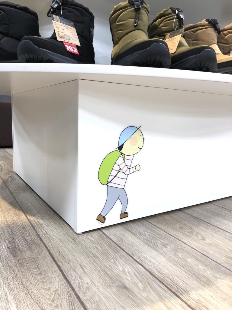 イラストもいろいろと描いてもらったらしく、「じつは、店舗内に『隠れみきさん』がたくさんいるんです」とのこと。そんな遊び心をあちこちに振りまいて来店者を楽しませてくれる工夫が、好日山荘京都河原町店の魅力のひとつにもなっているようです。