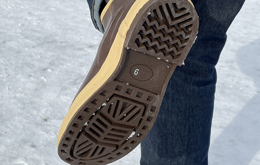 あとは寒さに対してですが、ラバー自体は硬化したような印象は受けませんでしたが、やはり冷たさを感じます。特殊なネオプレーン素材を使用しているとはいえ、インサレーション入りのスノーブーツと比べたら暖かくはありません。本国には−20℃ぐらいまで対応するというインサレーション付きのバージョンもあるらしいので、雪山で履くならそちらのタイプの発売を待ちたいですね。