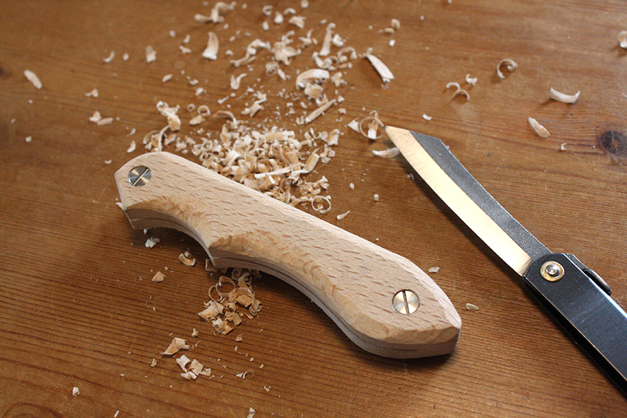 とりあえず完成したこのナイフ。しかしこれで終わりではない気がする。もう少し手に馴染むように削りたい部分もあるし、ハンドルの色はもっと濃くしたい。ニス? ステイン? 柿渋? ワックス? それとも焼き入れ? ネジ部も真鍮製のものに差し替えたい。完成した直後から、すでにいろいろとカスタマイズする方法を調べはじめている。