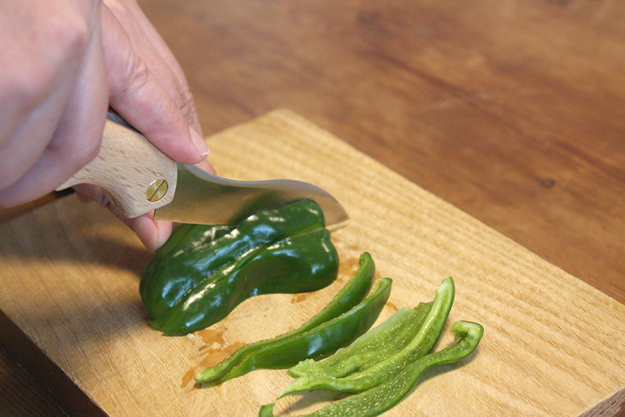 さぁ、切れ味は? 新品ということもあるがかなりいい。ピーマンもストレスなくスパスパ切れる。