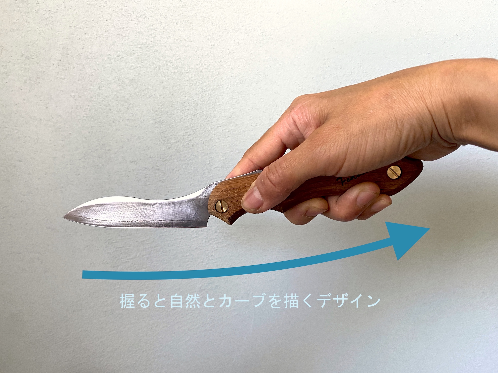「今回ご紹介いただいた折り畳み式料理ナイフの原型は、削る楽しさ、作る楽しさを伝えるために生み出した、ナイフキット『It’s my Knife folding』がベース。ハンドルを削ってナイフを作ることについつい目が行ってしまい、押し切りも引き切りもしやすいカーブ状のデザインや切れ味のよさなど、調理しやすい点がなかなか僕らも伝えきれていませんでした。