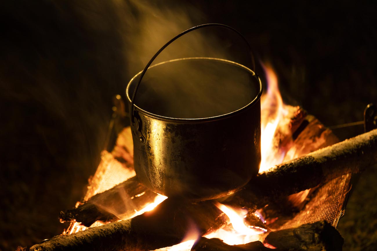 50回ほど殴打を繰り返すと、Mさんは「まあ、こんなもんかな」と言って手を止めた。コーヒーの入ったバンダナ袋は無慈悲な鉄拳制裁を受けクタクタになっていた。Mさんはそれを掴むと焚き火にかけられた鍋の中に放り込んだ。そして木の枝で沸き立つお湯をグルグルとかき混ぜ、何本目かのタバコに火を付けた。