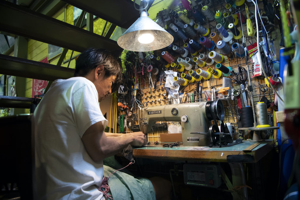 ELK店内の修理工房で、自らミシンを踏む中込さんはこう話す。