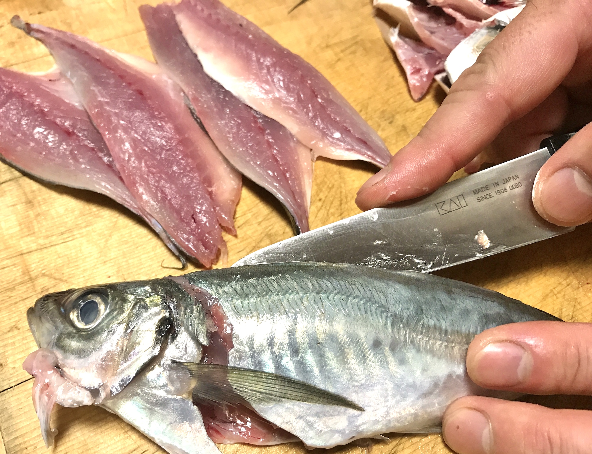アジをさばく。このサイズの魚なら中骨も背骨も気にせずおろせる。刺身も身を崩れさせずに切りだせた。そして、ブレードの形状が小ぶりな魚をおろすのにぴったりだった。