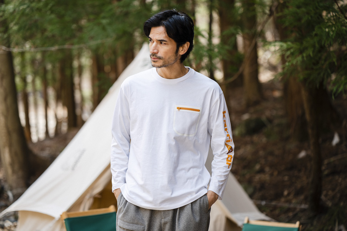 ブランドロゴをテントに見立てたユニークなグラフィックの「camp pocket T(キャンプ ポケット T)」は、全面が抗菌・抗ウイルス加工で守られているという心強さだ。