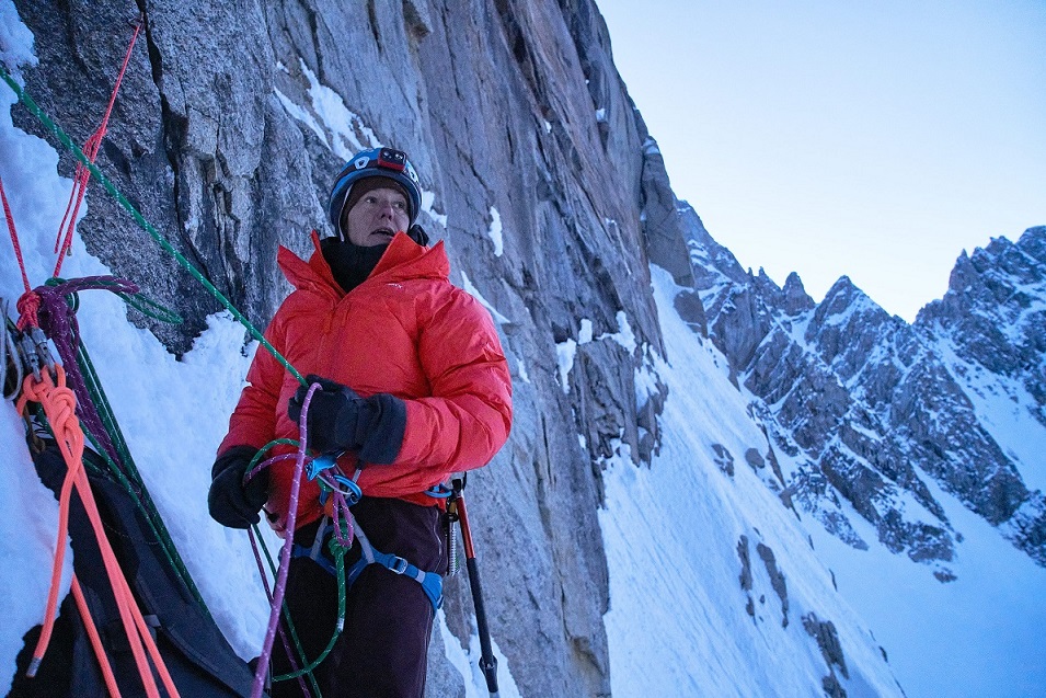 体を動かすことで内部から体温をあげ、かつ汗をかいた体を冷やさないように、防風・防水性・透湿性の高いアウターで体を守ることが冷え対策の基本だろう。一度下がってしまった体温は、衣服を着込むだけではなかなか回復しない。しかし、極寒のなかでも長時間動かずにじっとしていなければならない、特殊な人たちもいる。雪壁や岩場などを登るクライマーをロープで確保する重要な役割を担う、ビレイヤーたちだ。はげしく動くクライマーにくらべ、長時間じっとしているため、体温が奪われやすい。ビレイヤーは、じわじわと侵食してくる強烈な冷気と戦いながら、クライマーの命を預かっているのだ。