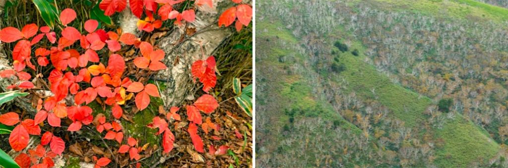 取材を実施したのは2021年の10月14日。隣の利尻山ではすでに初雪の便りもあったらしく、季節はまさしく冬の入り口。花の島が今年最後の彩りを添えるべく、朱に赤に黄色に色づいていた。