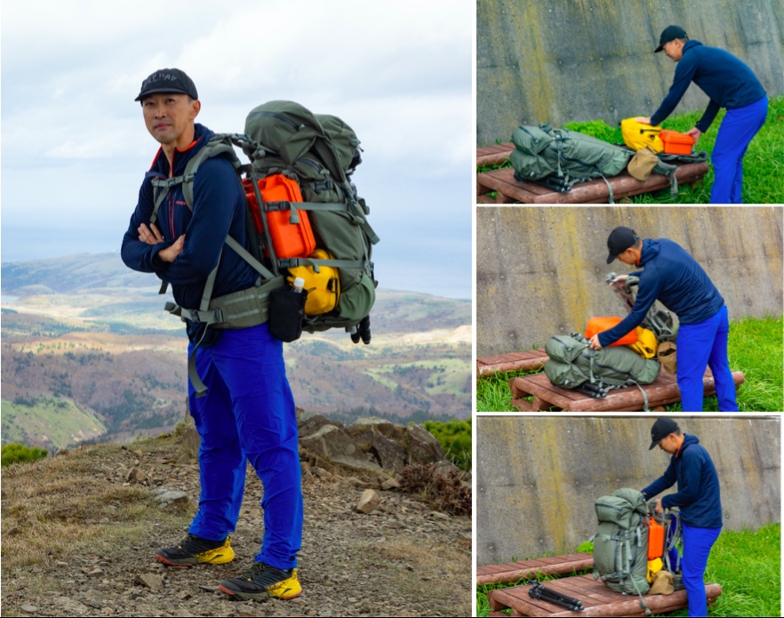 そんなことでちゃんと背負わないといけないので、ぼくもインターネットを使って大きくて強いバックパックを探すようになって。手に入れたのが某ブランドの105ℓモデル。使っているときは収納性がとてもよくて、軽量でフレームがあってちゃんと支えてくれていたので、これはいい買い物をしたと思っていました。パックの前面にアイゼンのケースがあったりして、小さな三脚なんかはスパッと入れて運ぶこともできました。