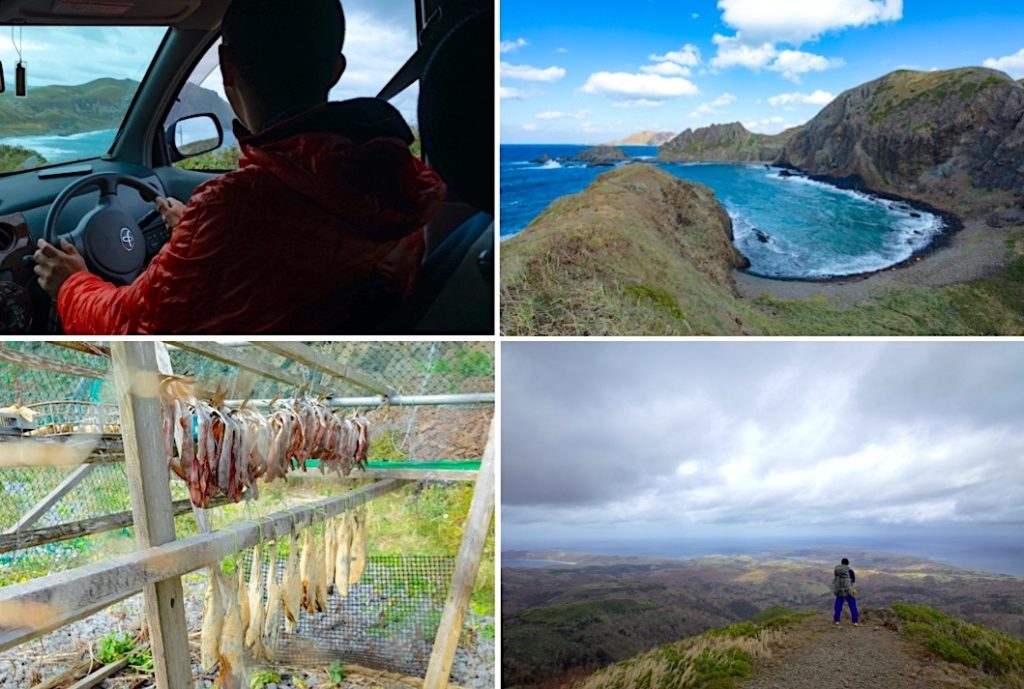 取材班が礼文島にいる間、大乗は島のあちらこちらに連れ出してくれた。本当に「礼文島が好き」なのが、ヒシヒシと伝わってくる。右上は、海岸段丘の断崖が間近に見られる澄海岬の絶景。右下は礼文岳の山頂から。眼下に人工物はほとんどなく、まさにウイルダネスのごとき壮大な景色が楽しめる。