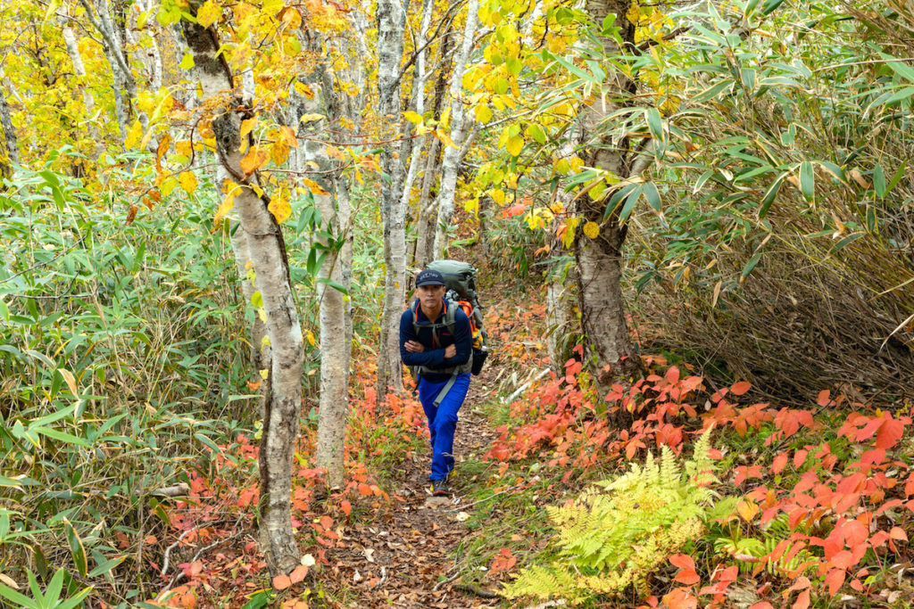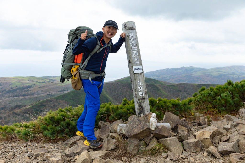 ミステリーランチのベアトゥース80を悠々と担ぐ齊藤大乗。礼文岳への緩やかな登りをともに歩き、さまざまな話を聞いた。彼にとっての礼文岳は、子どものころから慣れ親しんだ遊び場でもある。