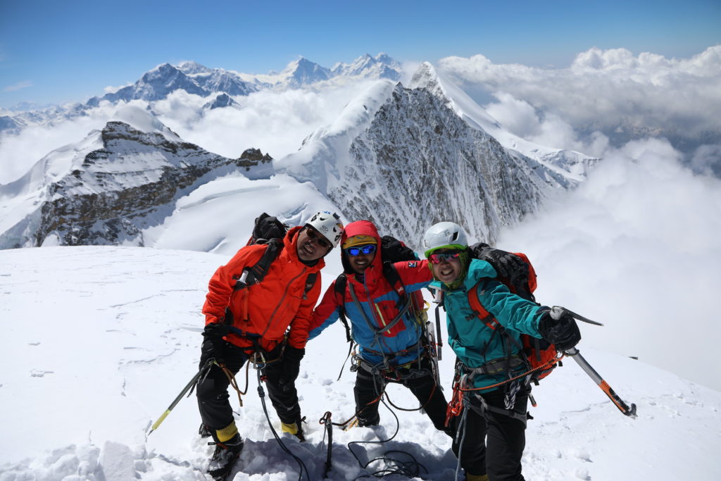 標高6,265mのパンカールヒマールの山頂にて。右から2番目が花谷泰広さん。全員で登頂!!