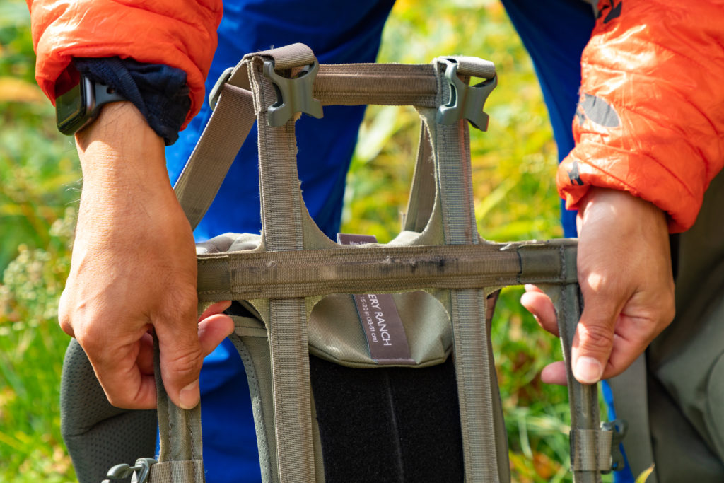 いままで使ってきたバックパックと比べると、ミステリーランチのパックは背面のクッション性にも無理がなく、フレームが折れてしまうのではというマイナスの感じがまったくないんです。安心感しかないという感じなんですね。だから、歩荷仕事にはもってこいです。