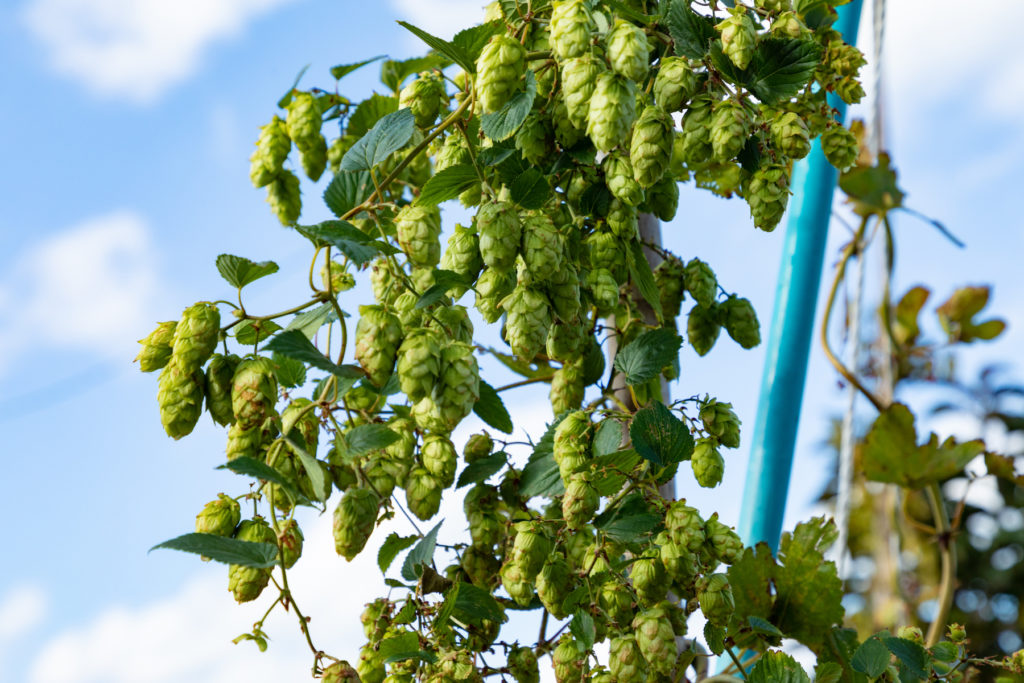 妙慶寺の庭先で繁茂するホップ。気候や条件がピタリとあったのか、大乗の期待どおりに、1年目にして大収穫となった。礼文島での苦味の効いた地ビールが飲める日も必ずややって来る!