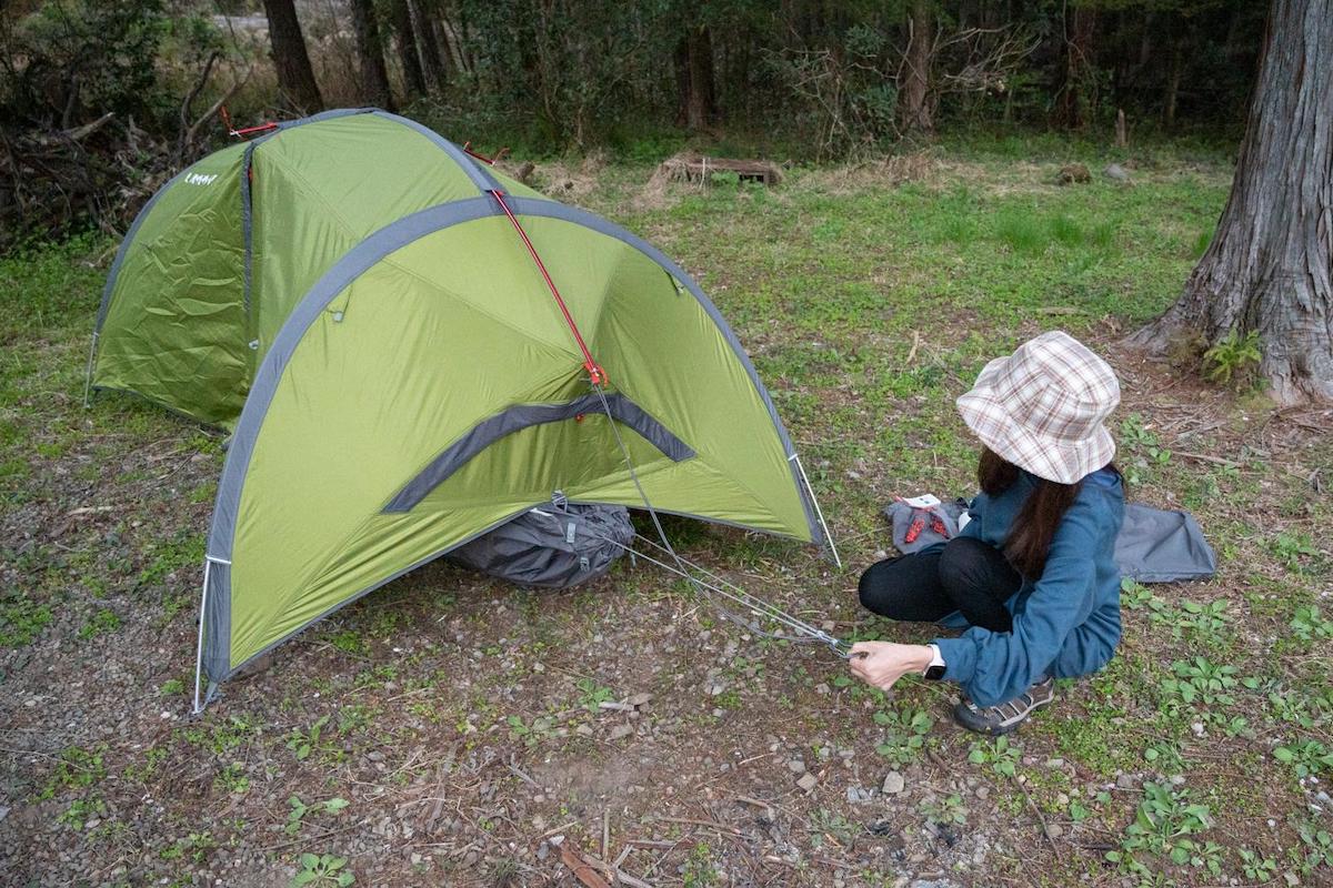 木がなくてハンモックを張れないときを想定して、テントモードでも使用してみた。