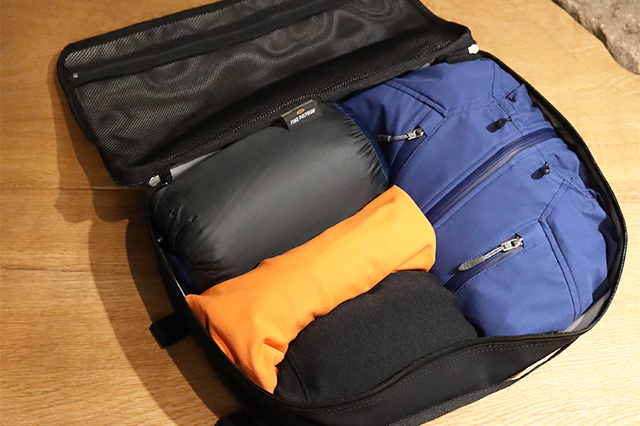 「エバーブレス マルチストレージ」の活躍の場は、バックパック内で小物・衣類などを整理するためだけに限られない。