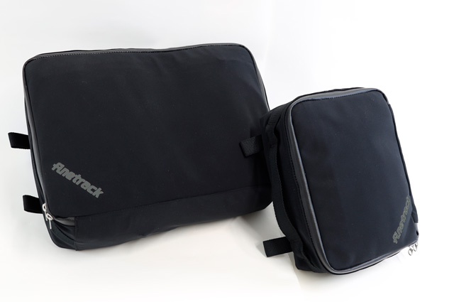 一般的な小物整理のためのストレージバッグは、ある程度の防水性はあっても外付けや単体使用することには不安があった。しかし、ファイントラックを代表する高機能生地であるエバーブレスであれば安心できる。