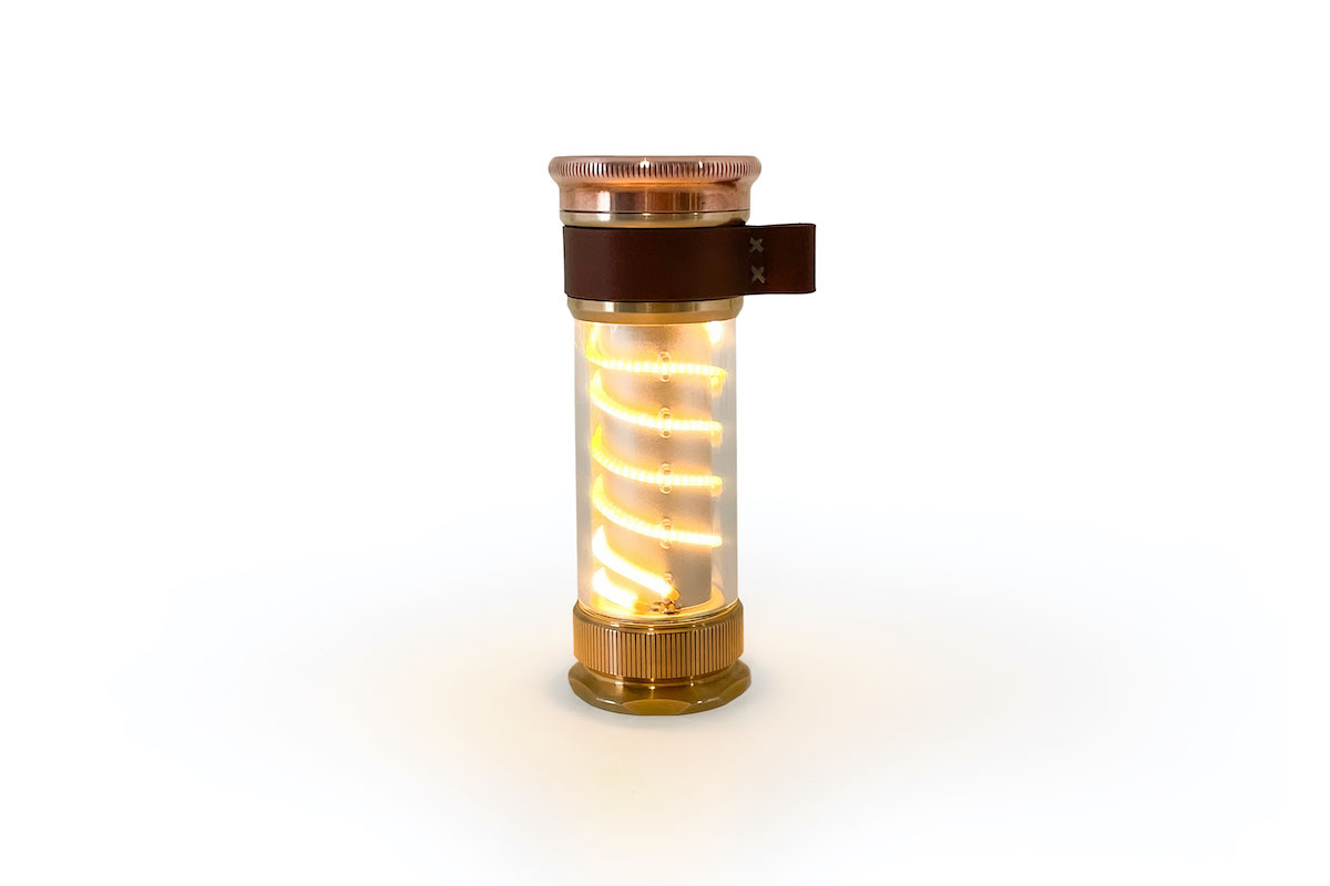 炭鉱夫のためにつくられたマイナーランタンを模しており、真鍮と銅でつくられたボディは年を重ねるごとに雰囲気を増していく。従来のベアボーンズと同様に、LEDの調光は滑らかでやさしい。