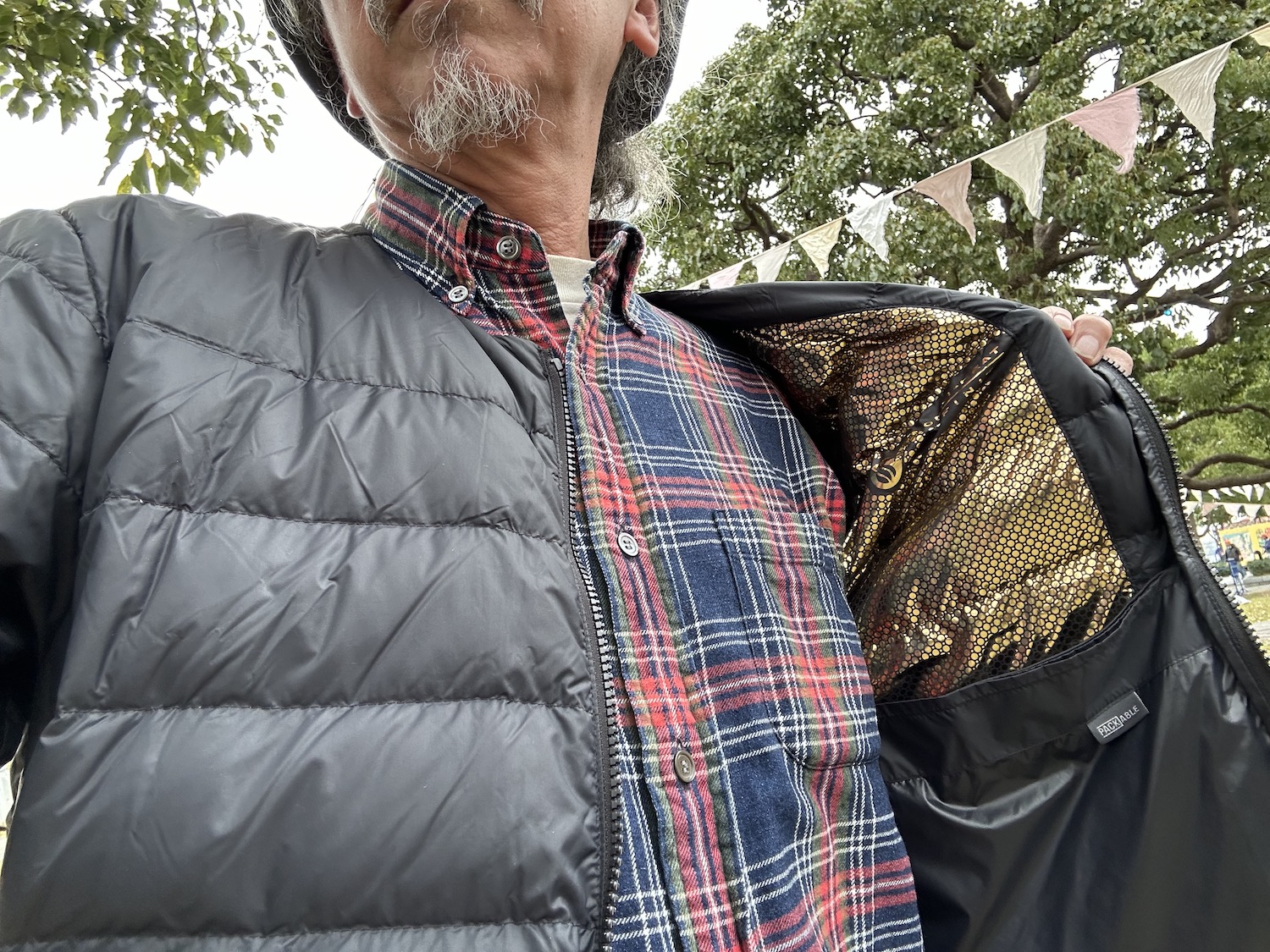 翌日は千葉の森で開催されている別のフェスへ。最高気温は前日の横浜より少し低く、風がやや強かったこともあって、日中はシェルのみ使用。レインジャケットを着ているような感覚だ。日が暮れた途端に冷え込んできたので、ミッドレイヤーをつけて対応した。シェルだけとも、ライナーだけとも、確実に数段レベルが違う暖かさが感じられた。着心地も予想以上に軽い。言葉にすると簡素な表現になってしまうけれど、内側からポカポカしてくる。これが熱反射の効果なのだろう。