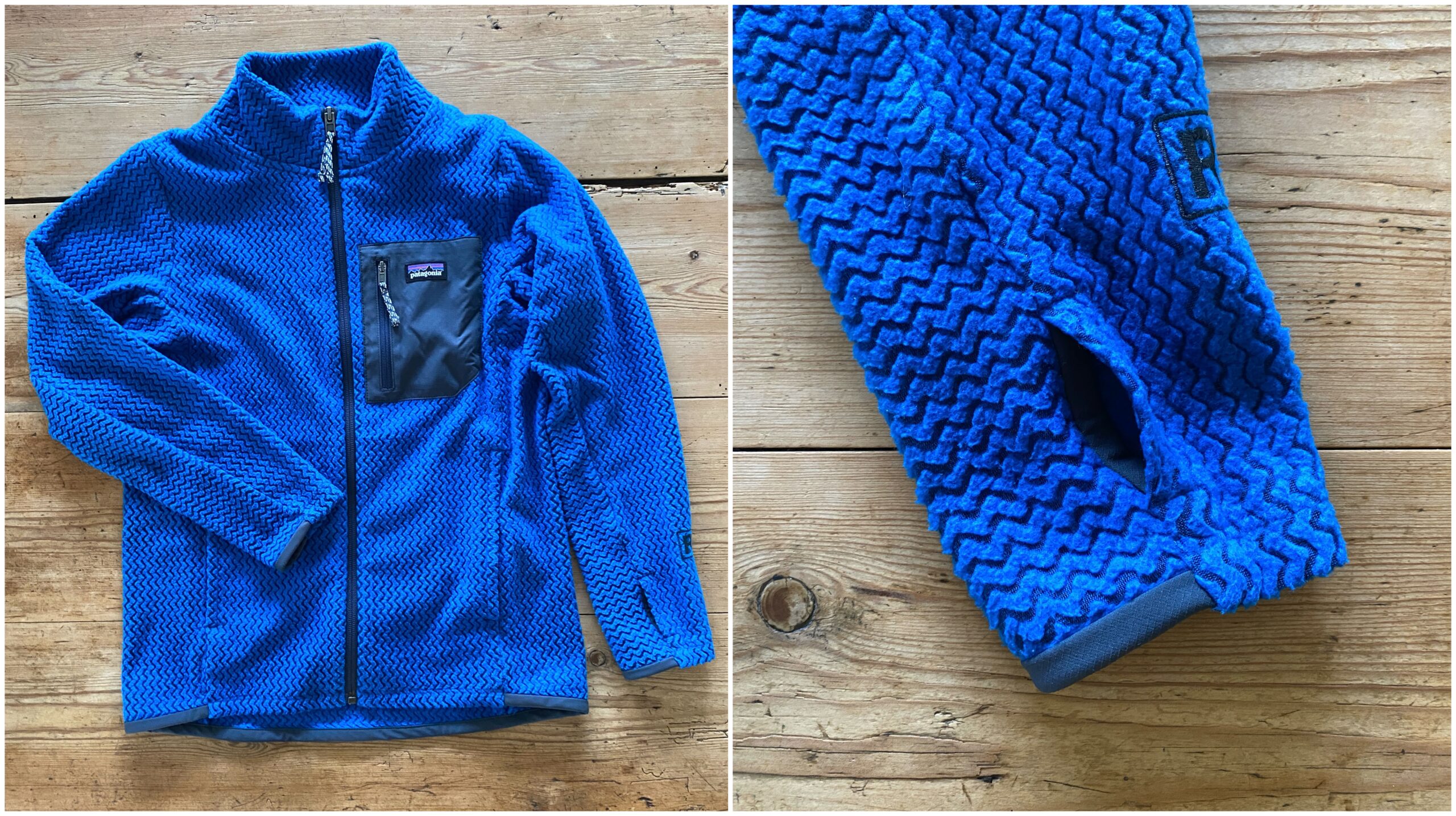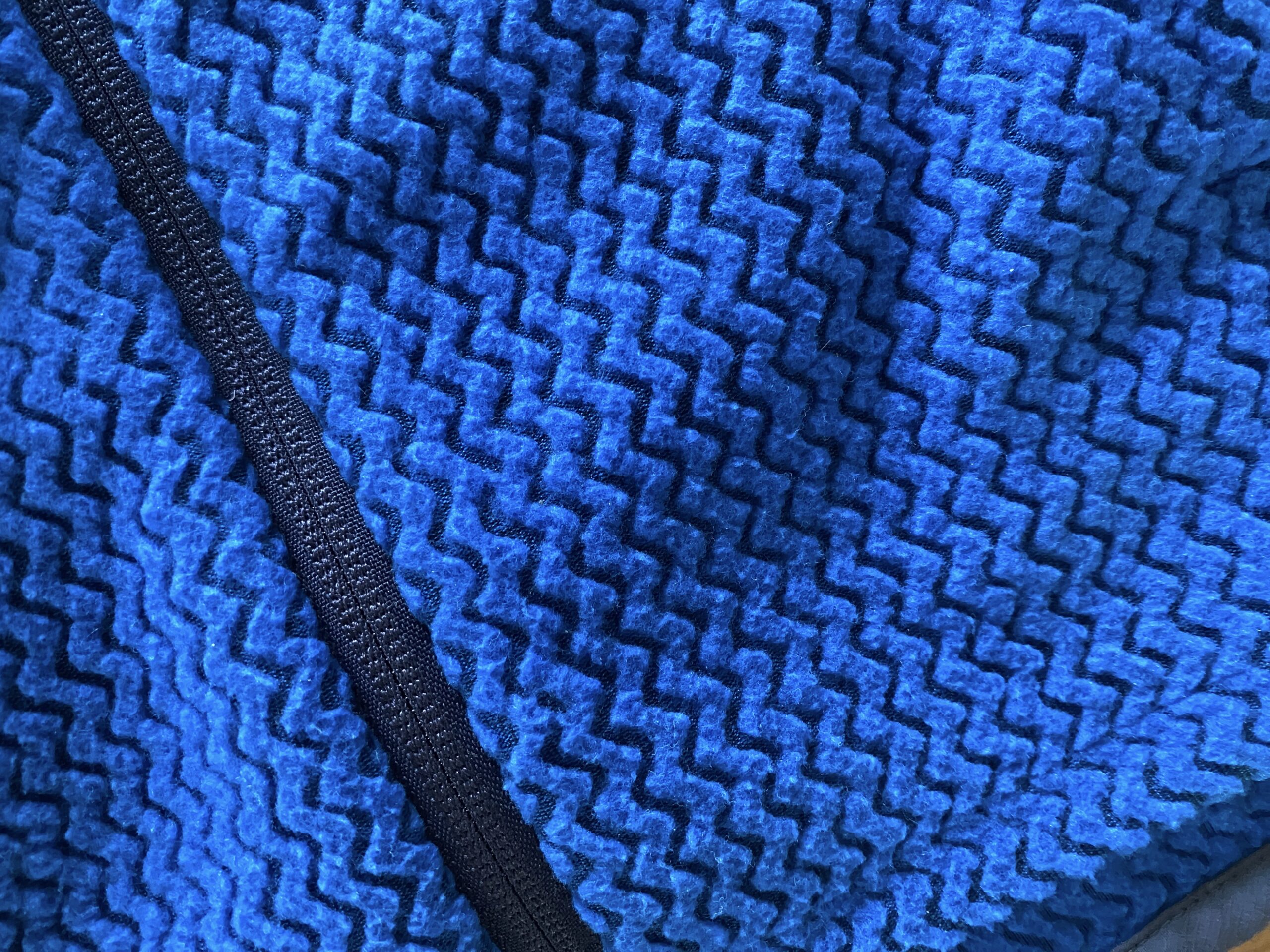 なかなか見ない素材ですが、これは中空糸(繊維の中心にストロー状の空洞がある化学繊維のこと)をパタゴニアが独自のジグザグ構造で仕上げたもの。エアと名のつくように、中空であることによる保温力の高さに加えて軽量で、そしてジグザグの間から蒸れが放出される通気性、速乾性もあわせもつ素材です。