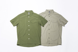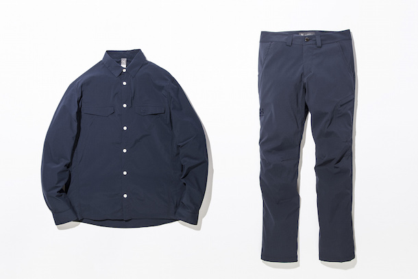 こんなにオシャレなのに、シャツもパンツも速乾性に富んだBluesign®認定のナイロンストレッチ素材を使用。つまり、デザインと機能性を驚くべきレベルの高さで両立させています。シャツは両脇下にベンチレーションを採用するなど、アウトドアウェアの手法を投入。パンツはヒザ部分に立体裁断を採りいれ、カッティングでも動きやすさを追求しました。シャツ)カラー:ディープブルー、ジュニパー、スティールスカイ サイズ:S〜XL 価格:12500円+税