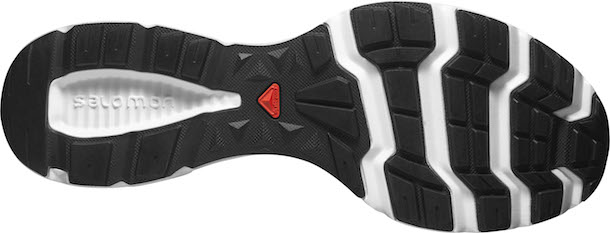 ベースになっているのはサロモンがナチュラルランニングをコンセプトに開発したトレイルランニングシューズ「SENSE PRO(センス プロ)」。このボトムユニットを使いながら「CROSSAMPHIBIAN」用にリファイン。アウトソールに細かなサイプを入れることで、濡れた岩場でも確実なグリップ力を発揮させることに成功しています。
