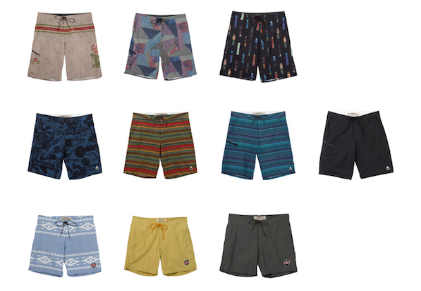 注目すべきはそのデザイン。素材感をいかしながらも、水着っぽさを排除して遊び心を注ぎ込みました。上段/Bridgewater Short 8,200円+税 中段/Moxie Boardshort 7,800円+税 下段/Creekside Short 6,800円+税