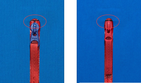 左がギャップのある旧ファスナー、右がギャップを解消した「RS™ ZIPPER SLIDER」。この「RS™ ZIPPER SLIDER」は2017年の秋冬モデルまで、ARC'TERYXだけが採用できるテクノロジーです