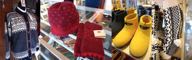 アウトドアウェア以外の注目はウール製品。ノルウェーには伝統と定評のあるウール製品が民芸品店などにたくさん並んでいます。