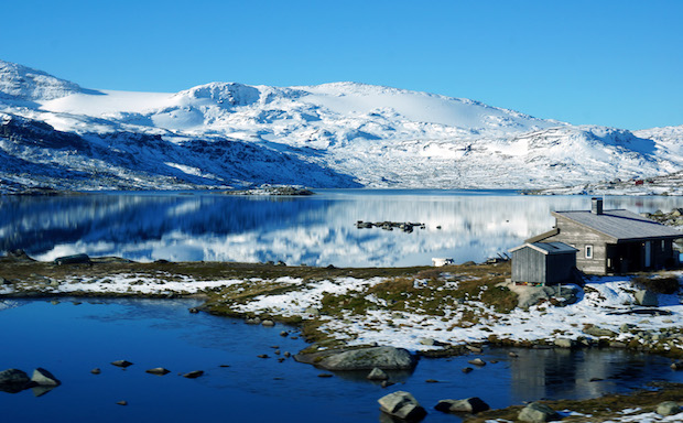 10月のノルウェー南部でも、標高の高い場所ではこの雪景色。しかもノルウェー国鉄からの車窓風景。歩かずしてこんな景色に出会えちゃいます