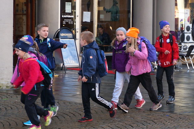 ベルゲンの小学生たち。アウトドアウェアを着ることは幼いころからの習慣かも