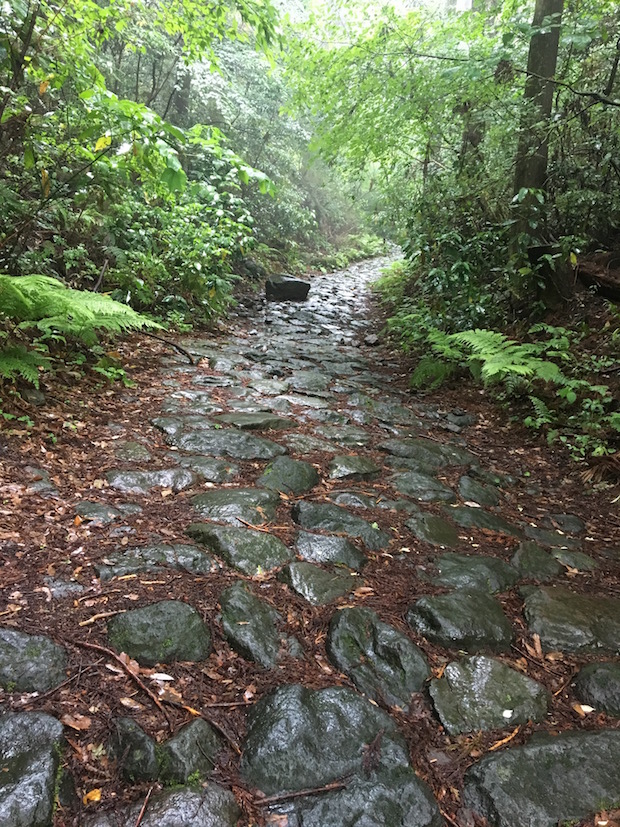 雨の箱根旧街道の石畳はとても雰囲気がある。往時の旅人がここを行き交っていたことに思いを馳せながら、歩く箱根路は雨の季節がおすすめだ。