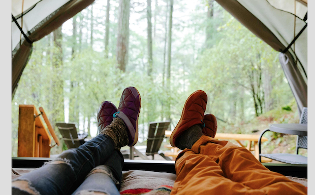 「エンバーモック」は、中綿入りのキルティングアッパーを採用したスニーカー。かかとを踏んでクロッグサンダルのようにも着用できる2WAYスタイルのスリッポンモデルで、テントの出入りもスムーズです。