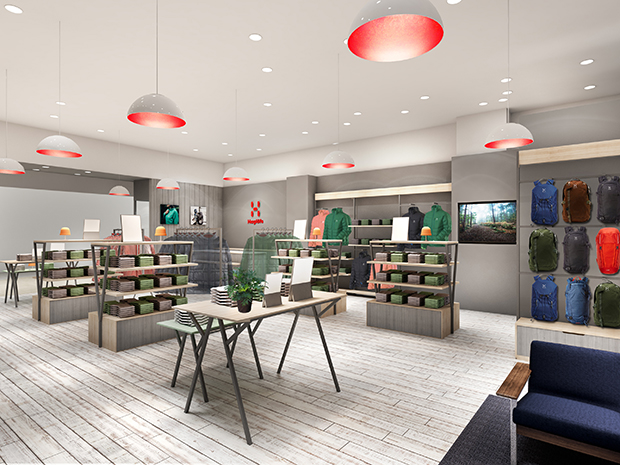 「すでにご存知の方も多いと思いますが、昨年の秋冬からホグロフスは『BEAT THE ELEMENTS』という新しいコンセプトを掲げてきました。この言葉には、『自然に打ち勝つ』という意味と、同時に『自然と共存する』という意味も含んでいます。店舗のイメージもこれまでは黒を基調としたモノトーンでハイパフォーマンスなイメージを打ち出していたんですが、新店舗出店を機により自然を意識した『RENLAV』というコンセプトを店舗で表現することとなりました。具体的にはモスグリーンやグレーといったナチュラル系の色合いに変わります。ロゴもあたたかみのある濃いオレンジをメインに使用しています」